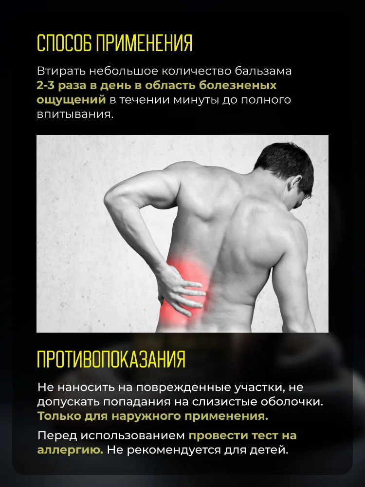 Главные преимущества использования бальзама заключаются в его быстродействии и эффективности. Он активно помогает при мышечных болях, растяжениях и суставах, а также может использоваться для профилактики заболеваний опорно-двигательного аппарата.